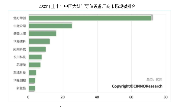 9月28日,CINNO Research公布数据显示,2023年上半年中国大陆半导体设备厂商市场规模前十大公司合计月162亿元,同比增长39%,环比下降9%。